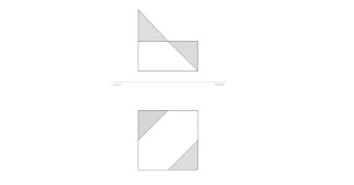 Representamos el teorema del cateto en planta y en el alzado le damos la misma altura a los dos prismas. Como tienen igual área en la base, al tener la misma altura tienen el mismo volumen, de esta forma hemos calculado un cubo que tiene el mismo volumen que un prisma. Podemos coger los teoremas de equivalencias para calcular figuras equivalentes y hacer sus figuras correspondientes en tres dimensiones, esto es, con volumen.
